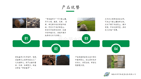 本產(chǎn)品針對水稻旱育苗大量挖取耕層土,耕層破壞嚴(yán)峻的現(xiàn)實,利用秸稈、蘑菇菌糠、稻殼、沼渣等農(nóng)林廢棄物經(jīng)過工廠化快速熟化,賦予全套的營養(yǎng)、防病、除草配方,制造成新型的嶄新的“無土育苗基質(zhì)”。