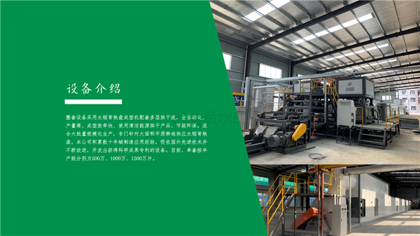 整套設(shè)備采用水稻育秧盤成型機(jī)配套多層烘干線,全自動化、產(chǎn)量高、成型效率快、使用清潔能源烘干產(chǎn)品、節(jié)能環(huán)保。適合大批量規(guī)?;a(chǎn),專門針對大面積平原耕地供應(yīng)水稻育秧盤。本公司積累數(shù)十年械制造應(yīng)用經(jīng)驗,吸收國外先進(jìn)技術(shù)并不斷改進(jìn),目前,單臺按年產(chǎn)量分別為500萬及1000萬片。